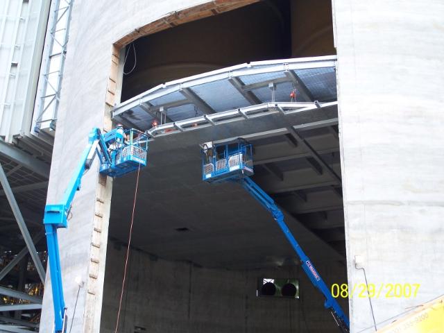 See pictures of our Fire-Rated Ceiling and Elevator Enclosure installation inside an 100 foot diameter smoke stack located at Dayton Power & Light in August 2007.